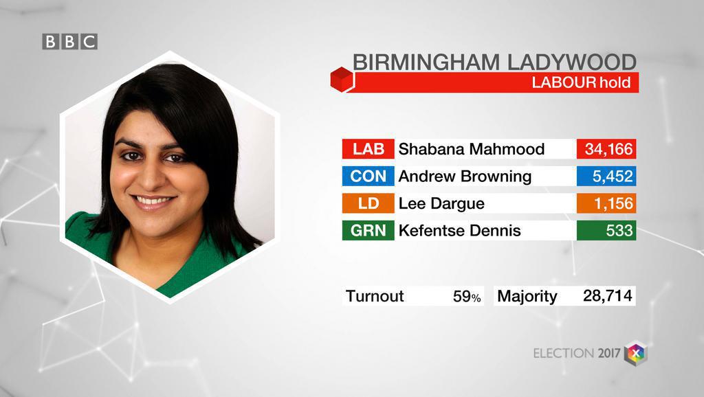 RT @bbcelection: Ladywood: LAB hold #GE2017. Full results: bbc.in/2qVyNRd pic.twitter.com/ZlkITPvKF3